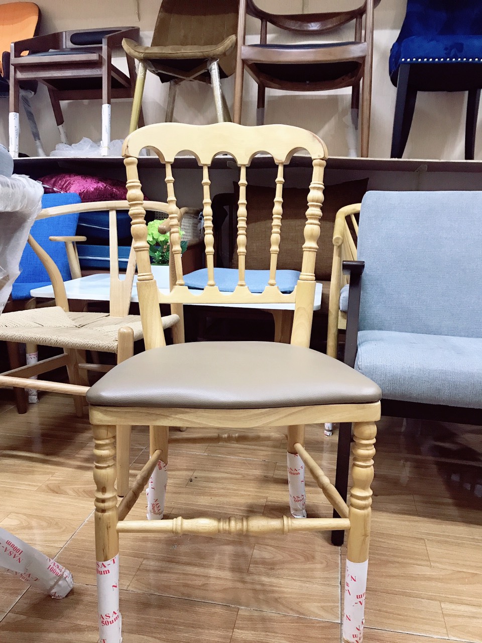 Ghế Napoleon là loại ghế biến thể của ghế chiavari , cao cấp và sang trọng hơn, thường dùng trong các buổi tiệc hoàng gia tại châu âu, nay được nhân rộng trong các buổi tiệc cưới sang trọng.Ghế Napoleon được sản xuất từ 100% gỗ cao su tự nhiên được tẩm sấy kỹ lưỡng đảm bảo chất lượng không bị cong vênh, mối mọt theo thời gian sử dụng. Ghế gỗ tự nhiên được phủ một lớp sơn PU bóng mờ giúp nổi bật vân gỗ tự nhiên, tránh thấm nước, dễ lau chùi và an toàn cho người dùng.